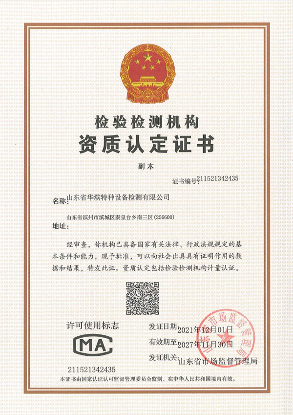 您好,歡迎訪問山東省華濱特種設備檢測有限公司官網!